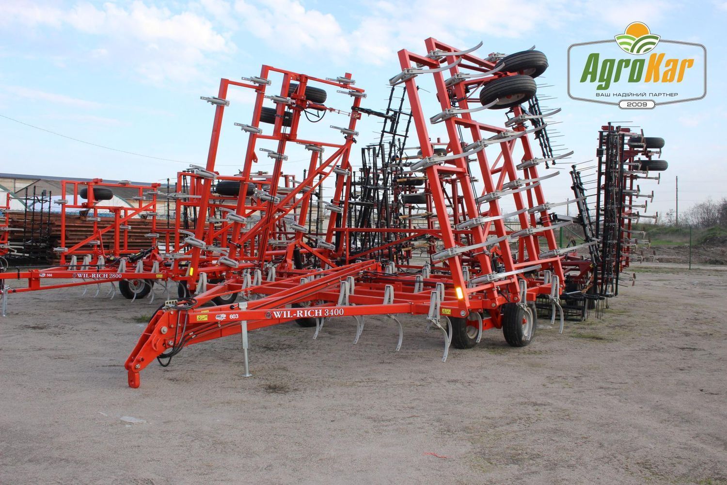 Культиватор Wil Rich 3400 (603) – 12 метрів, 3 секційний, оснащений 5 рядами робочих органів та 4 рядами пружинної борони. За запитом можемо виготовити котки планчатого типу. Необхідна потужність трактора від 220 к.с. По даному культиватору проводився повний капітальний ремонт, перебрані та перевтулені усі робочі органи, встановлені нові лапи, прокачена гідравліка.