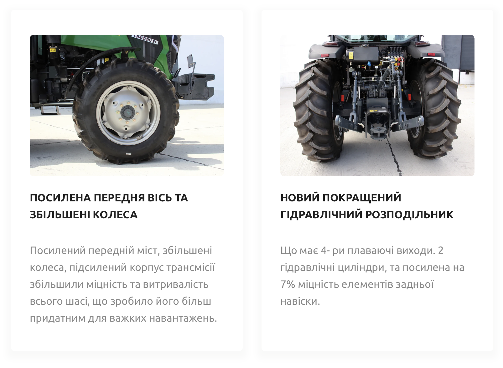 Завдяки потужному двигуну з системою вприску палива Common Rail, посиленими мостами виробника GADT, оновленому дизайну та високому рівню шумування і герметичності кабіни, ця модель ідеально підходить для якісного виконання робіт в полях, в лісах та для комунальних потреб.
