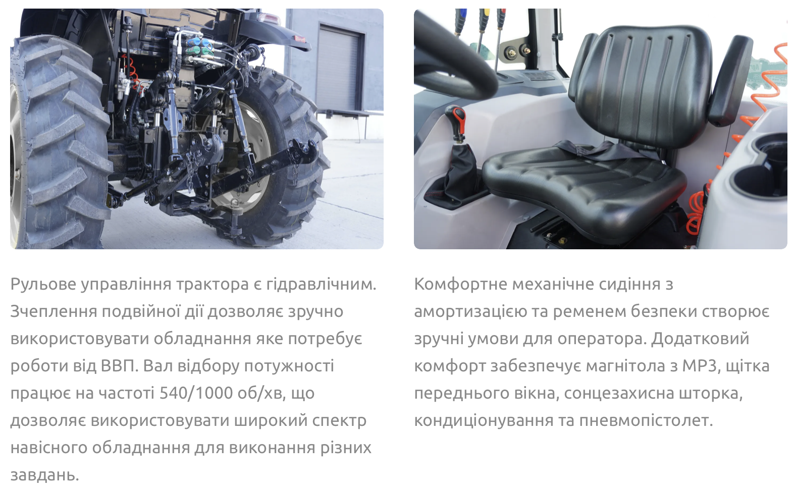 Гідросистема має дві пари виходів, що дозволяє ефективно використовувати різні гідравлічні механізми